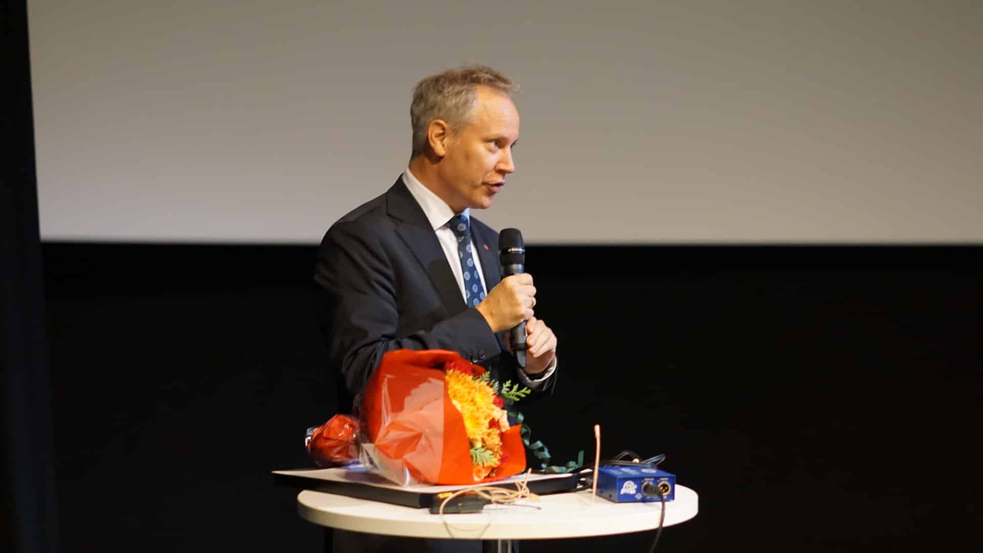 På bildet: seksjonssjef Statens Vegvesen Transport Nord, Ine Hilling, ordfører Grete Ellingsen, samferdselsminister Jon-Ivar Nygård.