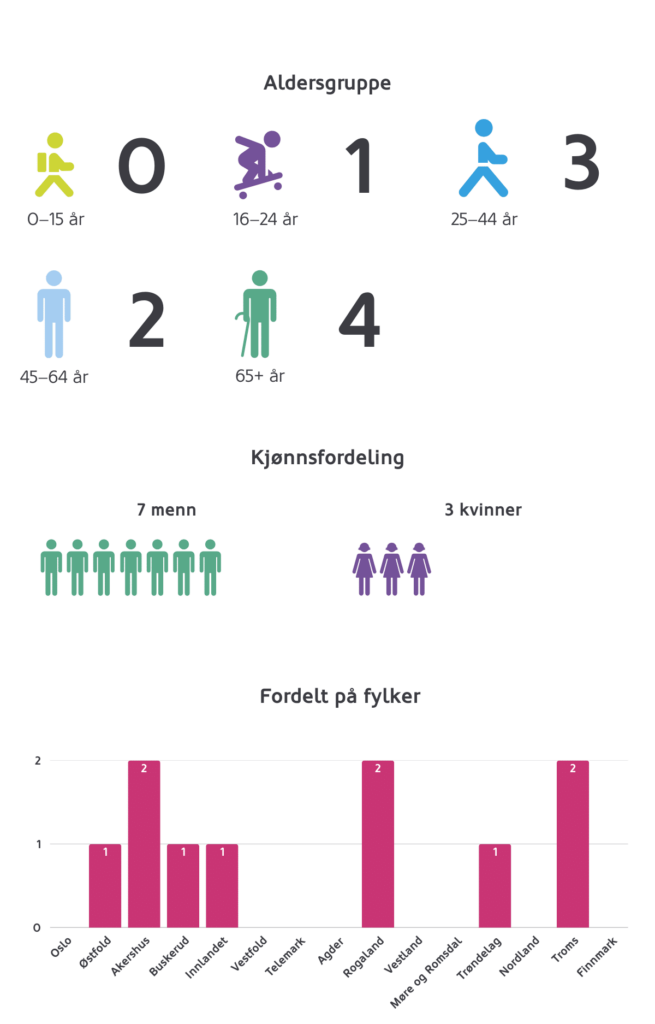 Statistikken inkluderer ikke følgende : i) ulykker som skyldes illebefinnende, ii)i selvvalgte ulykker, iii) ulykker utenfor offentlig vei, iiii) ulykker på vei som ikke er åpen for allmenn trafikk